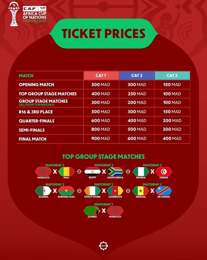 وأعلنت اللجنة المنظمة، بتنسيق مع الكونفدرالية الأفريقية لكرة القدم (كاف)، عن تفاصيل أثمنة التذاكر التي جاءت متدرجة ومتكيفة مع جميع الفئات الجماهيرية، حرصاً على تمكين أكبر عدد ممكن من المشجعين من متابعة مباريات البطولة.