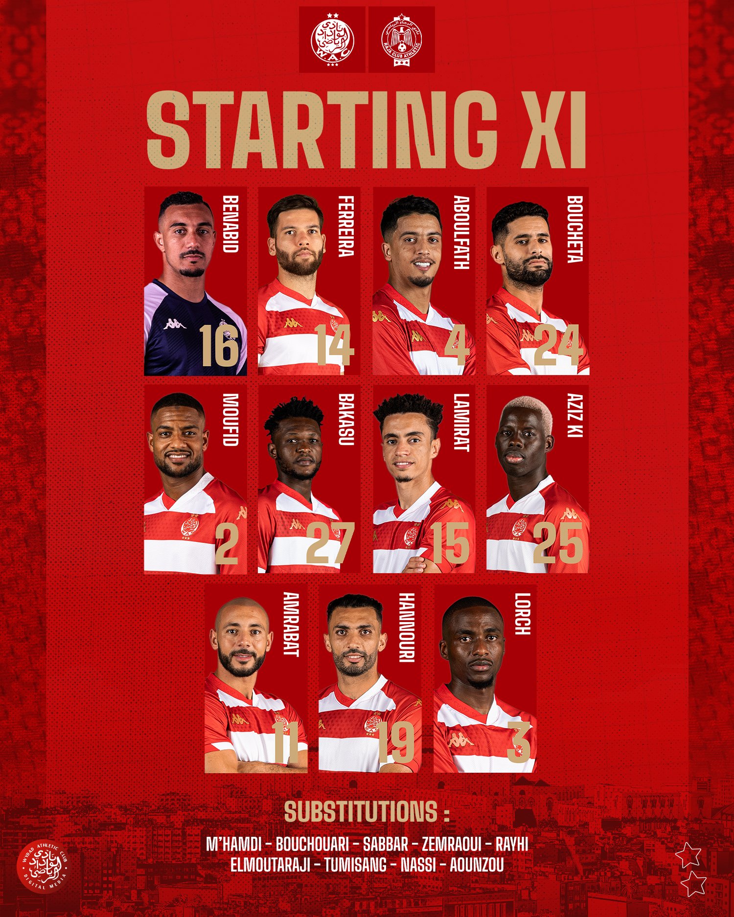 حدد محمد أمين بنهاشم، مدرب الوداد الرياضي، التشكيلة الأساسية للفريق الأحمر، التي ستدخل مواجهة الديربي البيضاوي أمام الرجاء الرياضي، برسم مؤجل الجولة الخامسة من منافسات البطولة الوطنية الاحترافية.