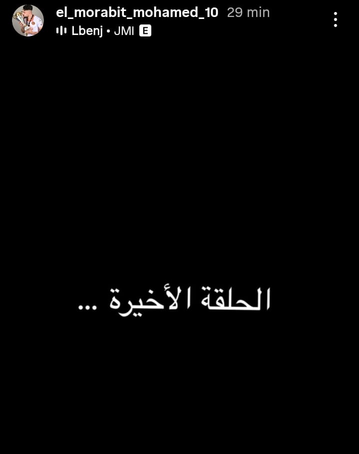ونشر لاعب نهضة بركان، اليوم الخميس 4 دجنبر 2025، ستوري غامضاً على حسابه الرسمي بـ”إنستغرام”، كتب فيه: “الحلقة الأخيرة”.