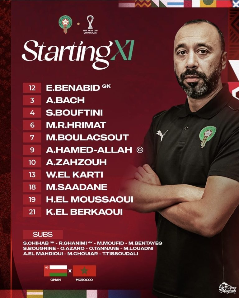 اعلن طارق السكتيوي، مدرب المنتخب الوطني الرديف، عن التشكيلة الرسمية التي ستخوض مباراة يومه الجمعة 5 دجنبر 2025 أمام منتخب سلطنة عُمان.