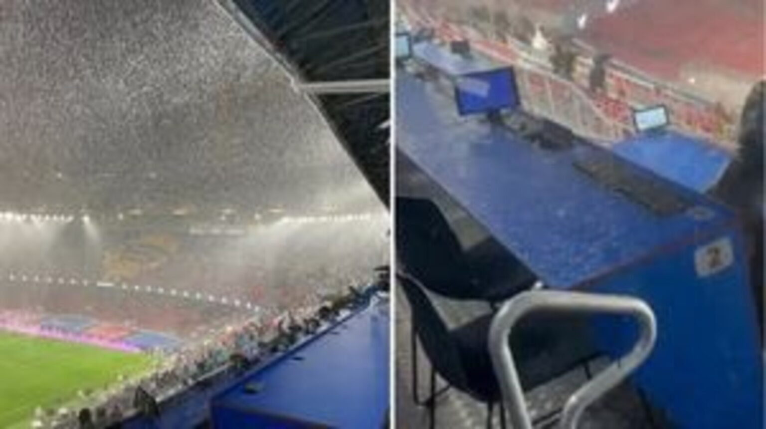 وتحولت أجزاء واسعة من الملعب إلى برك مائية، ما أغرق المشجعين والصحفيين على حد سواء، وأثار حالة من الفوضى داخل المدرجات.
