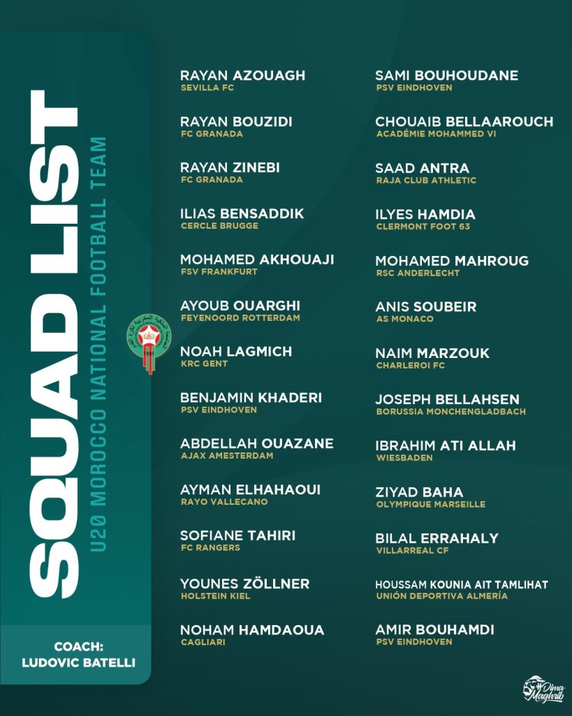يدخل المنتخب الوطني لأقل من 20 سنة في الفترة الممتدة ما بين 23 و31 مارس 2026، تجمعا إعداديا مغلقا بمركب محمد السادس لكرة القدم.