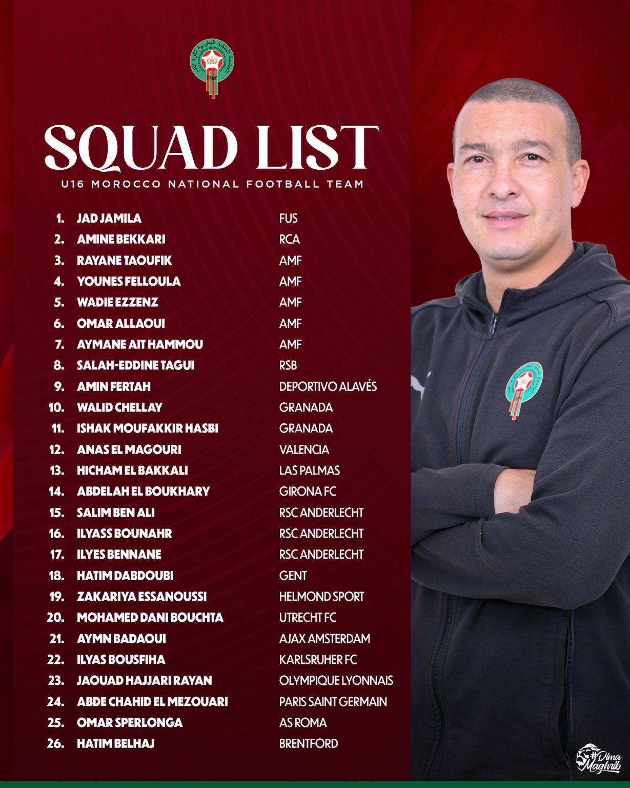 لهذا الغرض، وجه نبيل باها، مدرب المنتخب الوطني لأقل من 16 سنة، الدعوة إلى 26 لاعبًا للمشاركة فبي هذه البطولة الدولية ويتعلق الأمر: