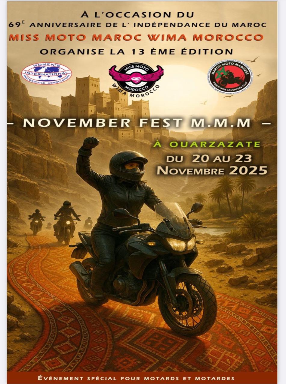 تستعد مدينة ورزازات، لاحتضان فعاليات النسخة الثالثة عشرة من المعسكر الدولي للدراجات النارية من الحجم الكبير، وذلك خلال الفترة الممتدة من 20 إلى 23 نونبر 2025.